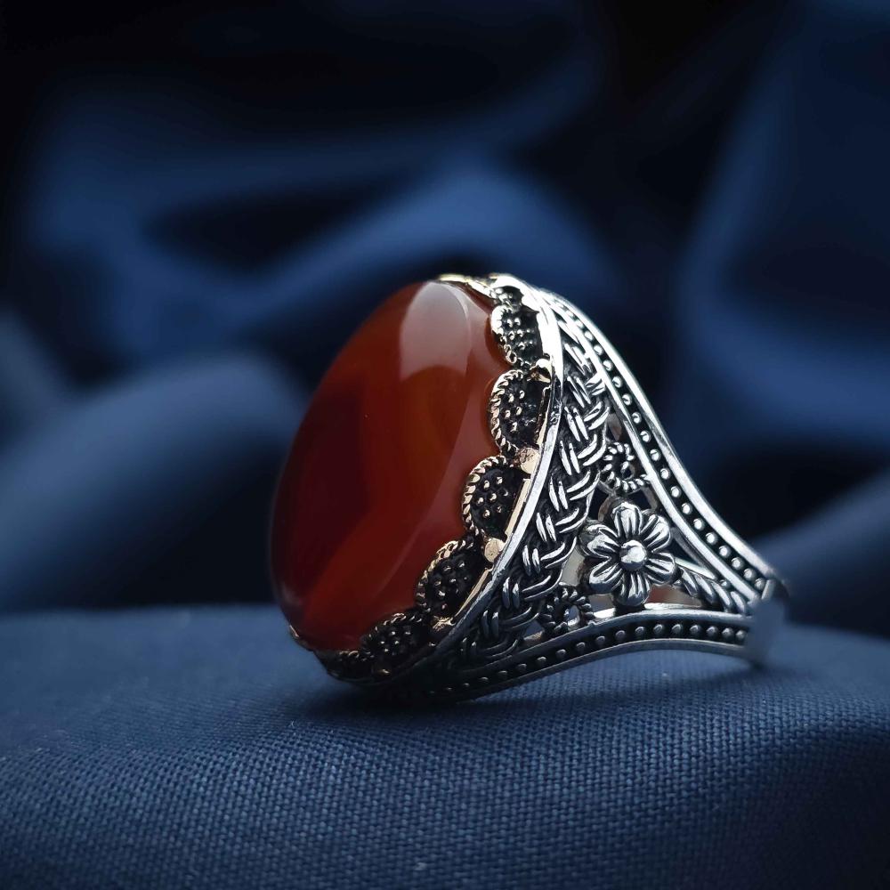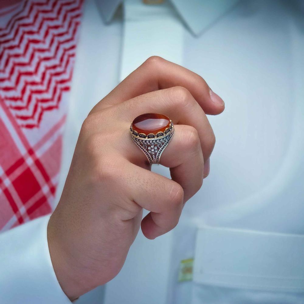 عقيق يماني طبيعي يعطي الخاتم لمسة فاخرة وأصيلة.