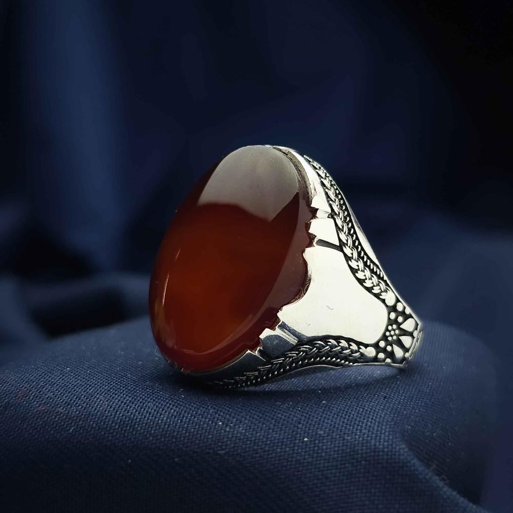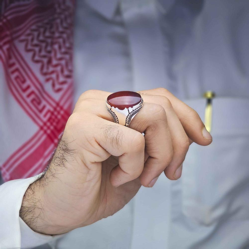 عقيق يماني طبيعي يعطي الخاتم لمسة فاخرة وأصيلة.