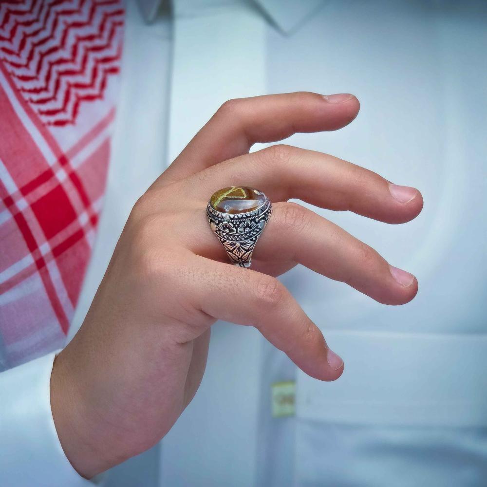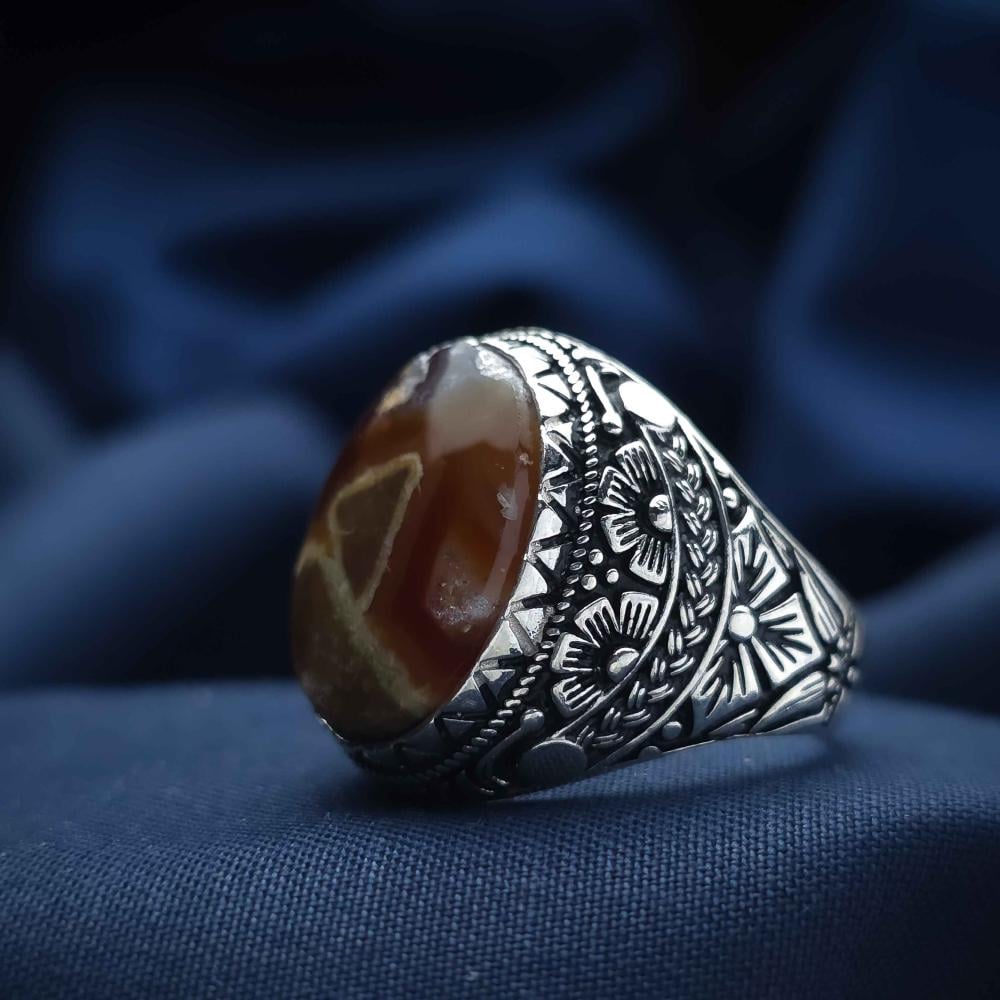 عقيق يماني طبيعي يعطي الخاتم لمسة فاخرة وأصيلة.