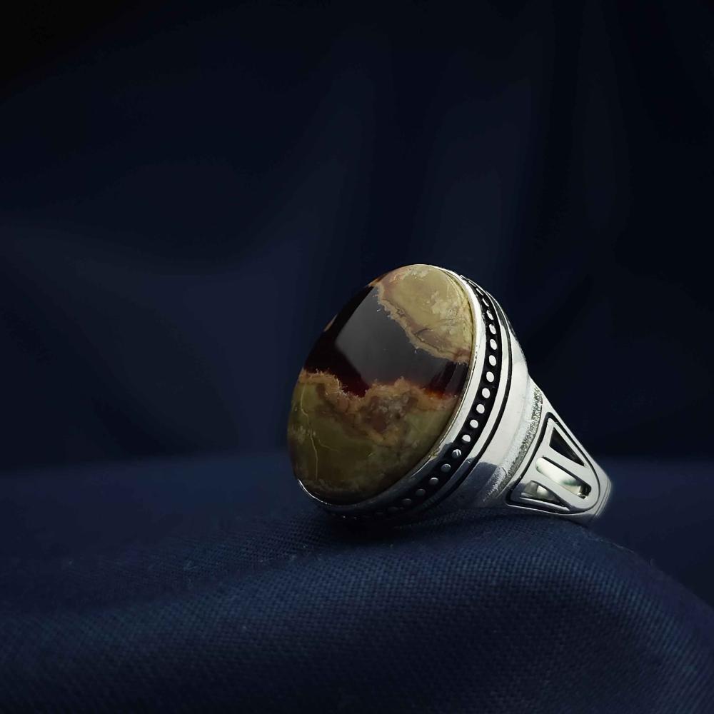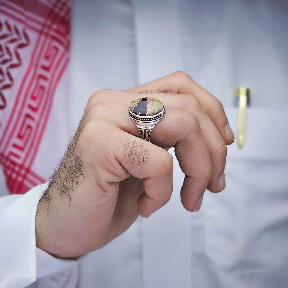عقيق يماني طبيعي يعطي الخاتم لمسة فاخرة وأصيلة.