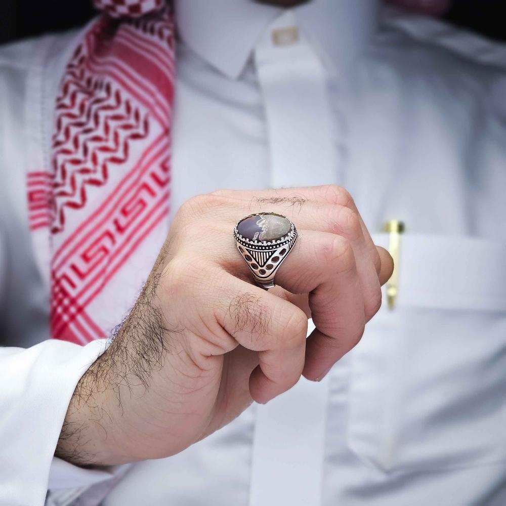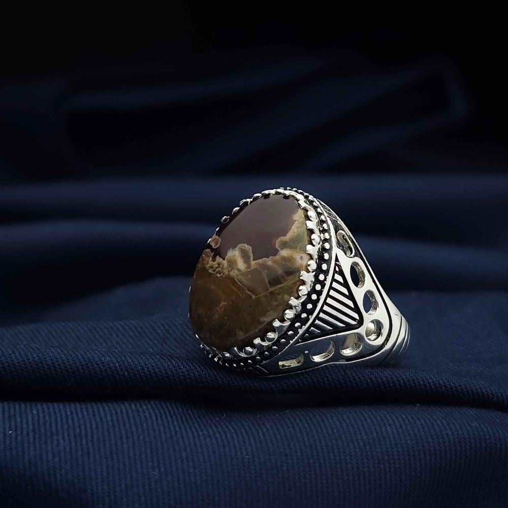 عقيق يماني طبيعي يعطي الخاتم لمسة فاخرة وأصيلة.