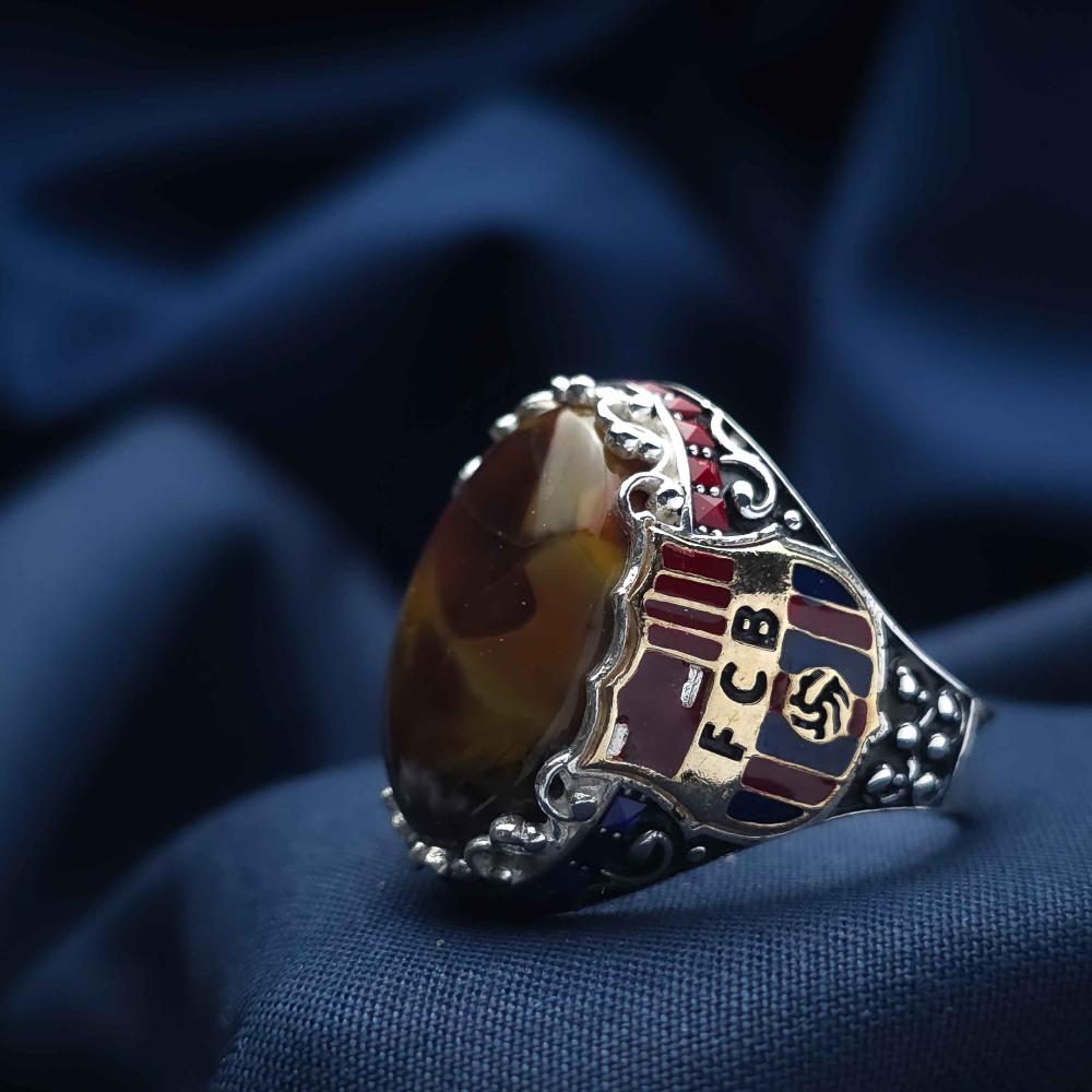 عقيق يماني طبيعي يعطي الخاتم لمسة فاخرة وأصيلة.