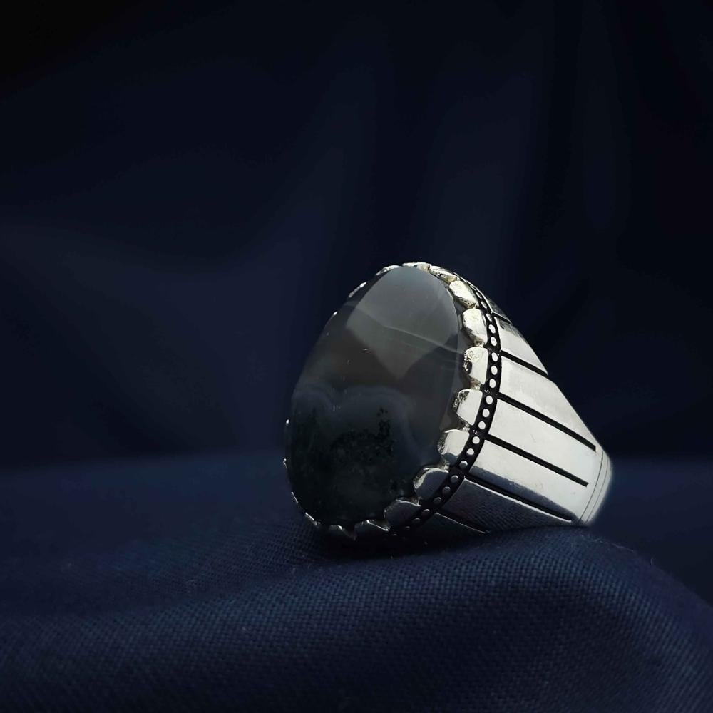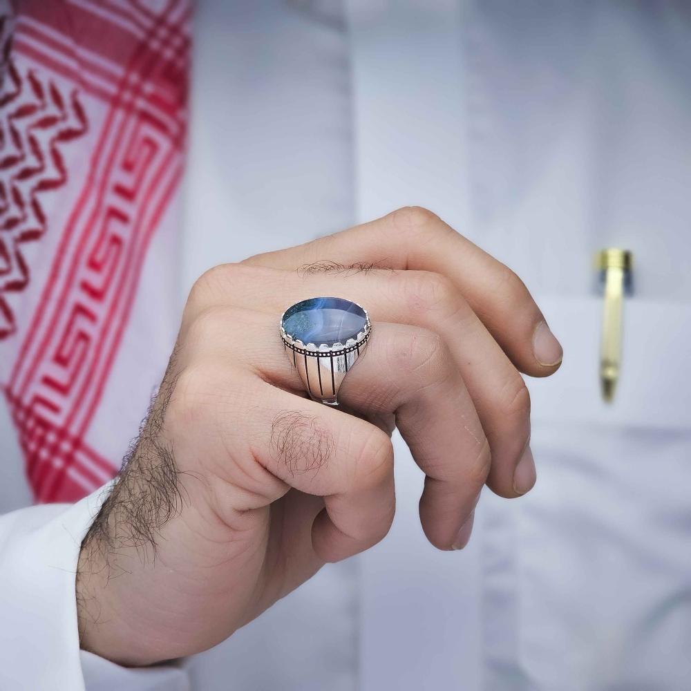 عقيق يماني طبيعي يعطي الخاتم لمسة فاخرة وأصيلة.