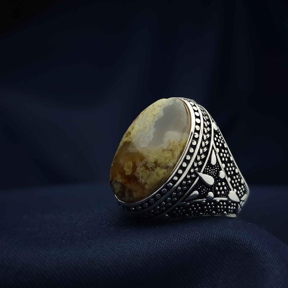 عقيق يماني طبيعي يعطي الخاتم لمسة فاخرة وأصيلة.