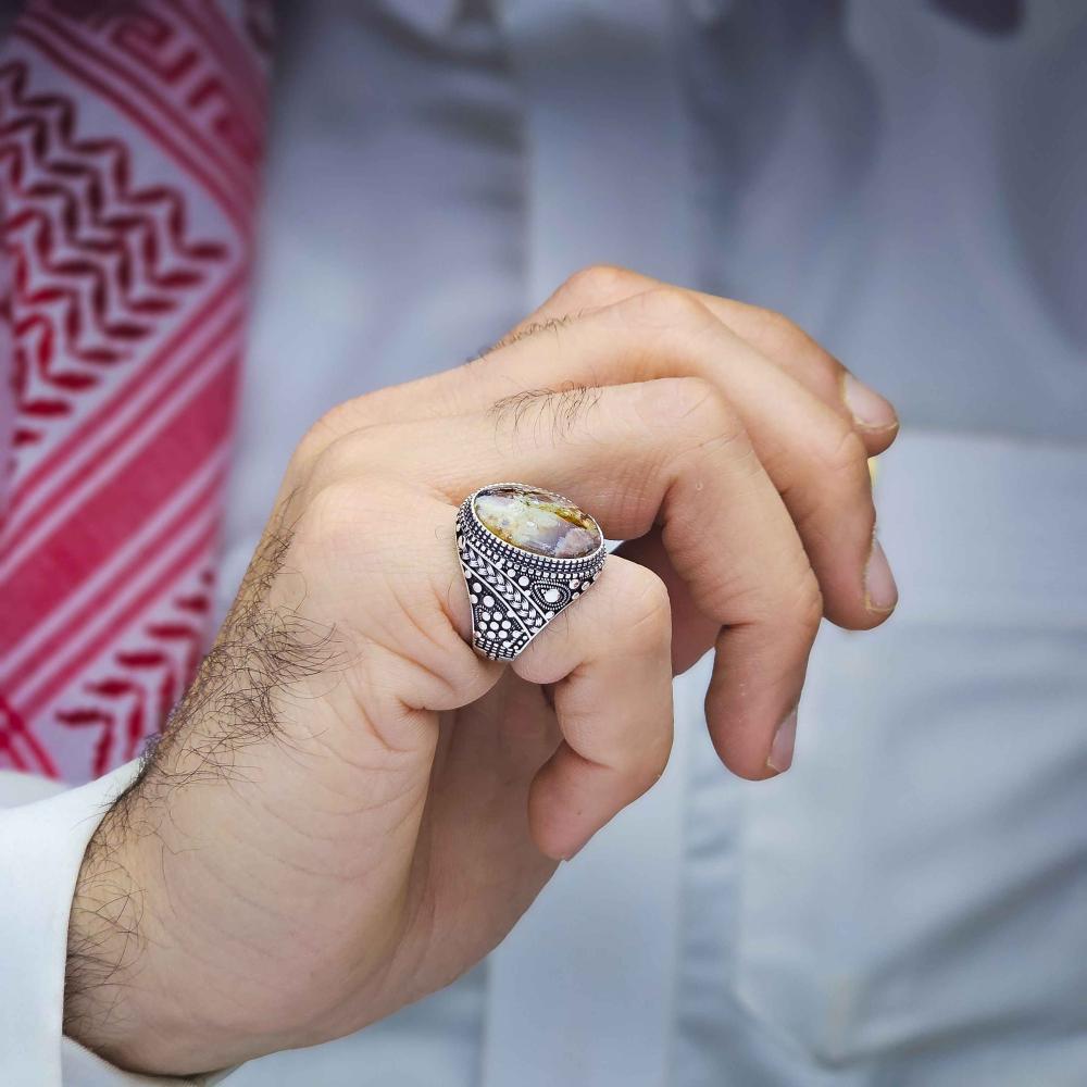 عقيق يماني طبيعي يعطي الخاتم لمسة فاخرة وأصيلة.
