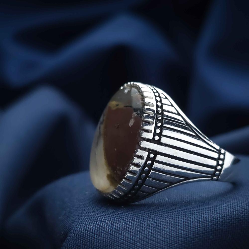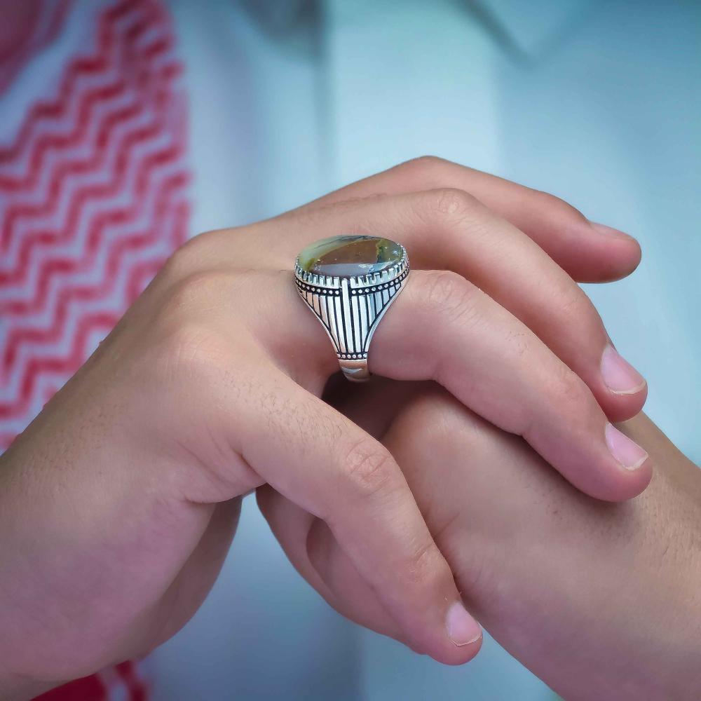 عقيق يماني طبيعي يعطي الخاتم لمسة فاخرة وأصيلة.