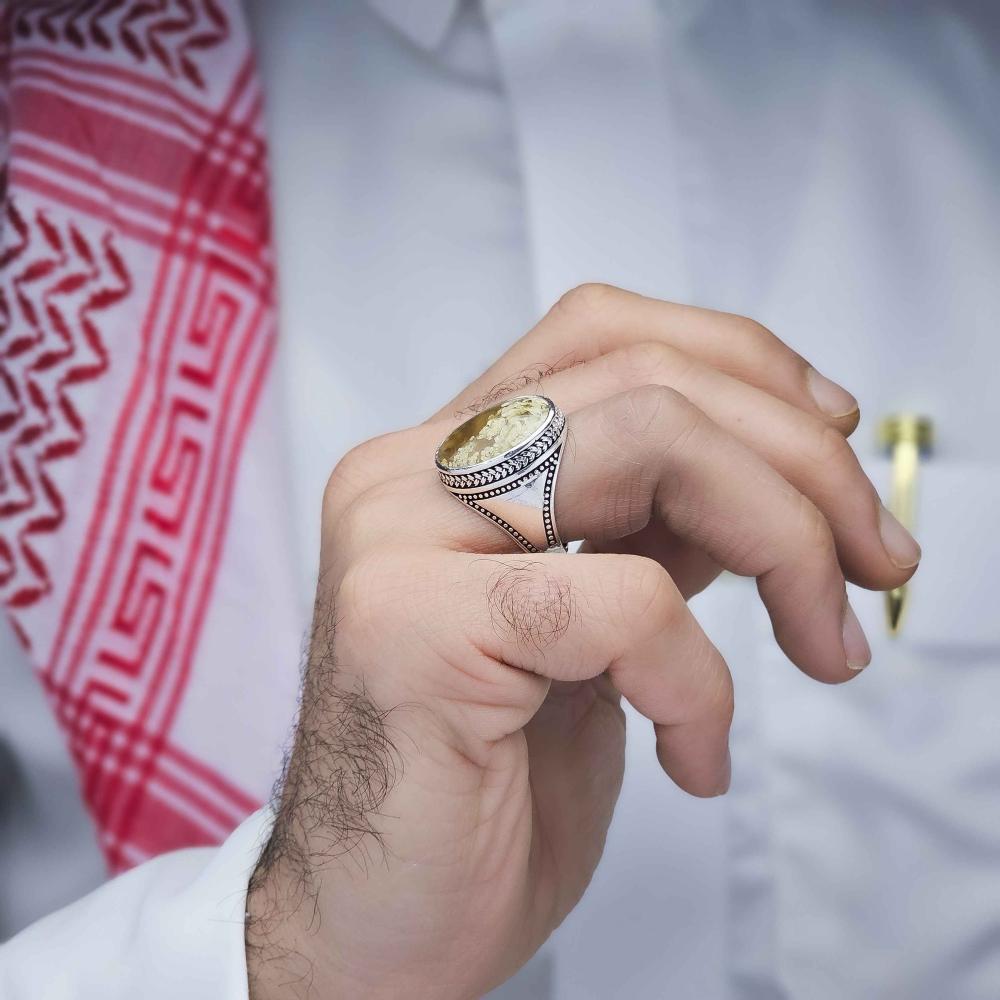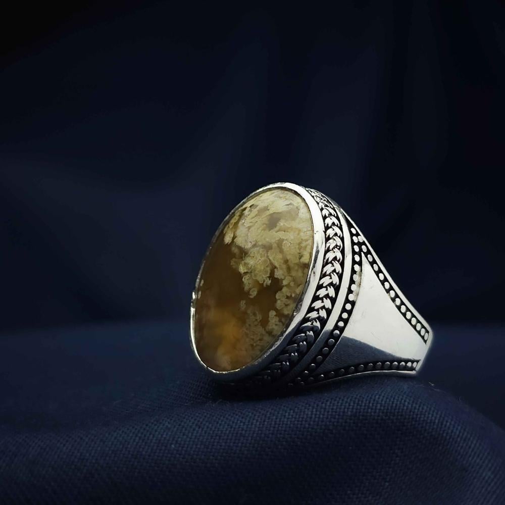عقيق يماني طبيعي يعطي الخاتم لمسة فاخرة وأصيلة.