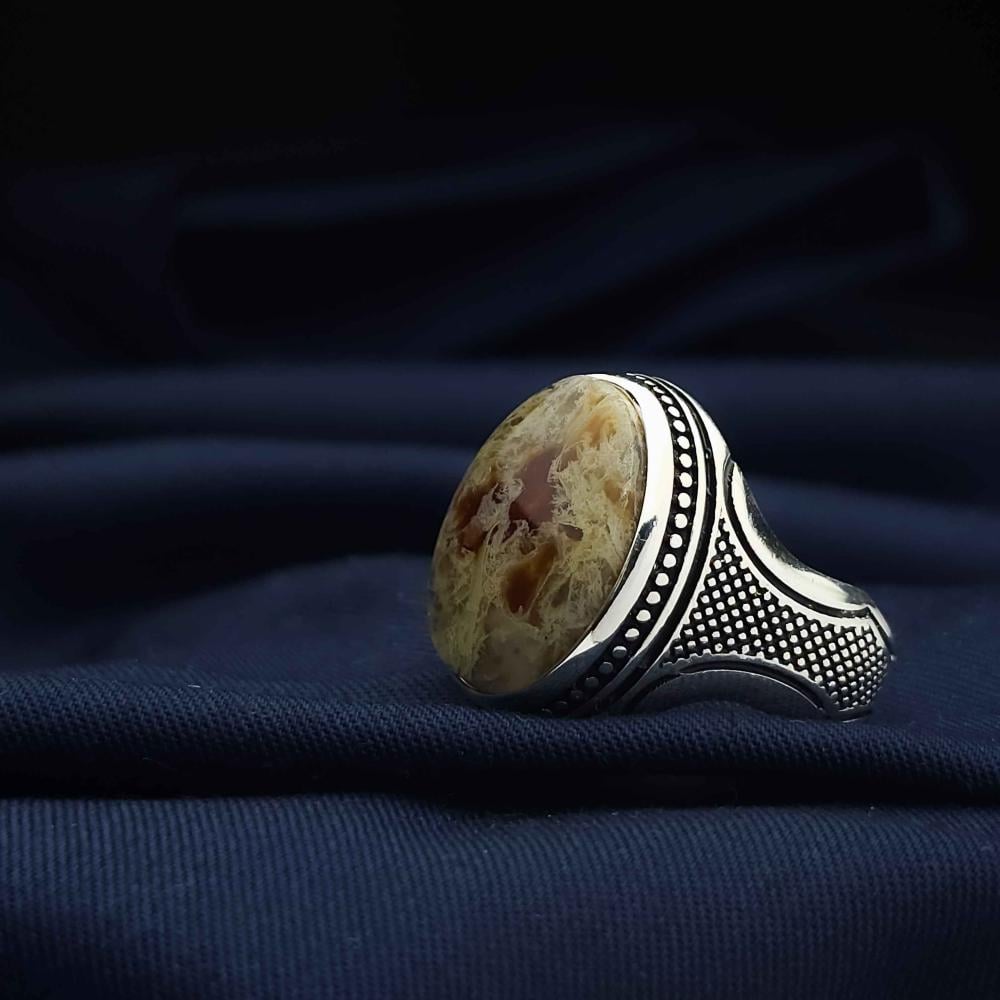 عقيق يماني طبيعي يعطي الخاتم لمسة فاخرة وأصيلة.