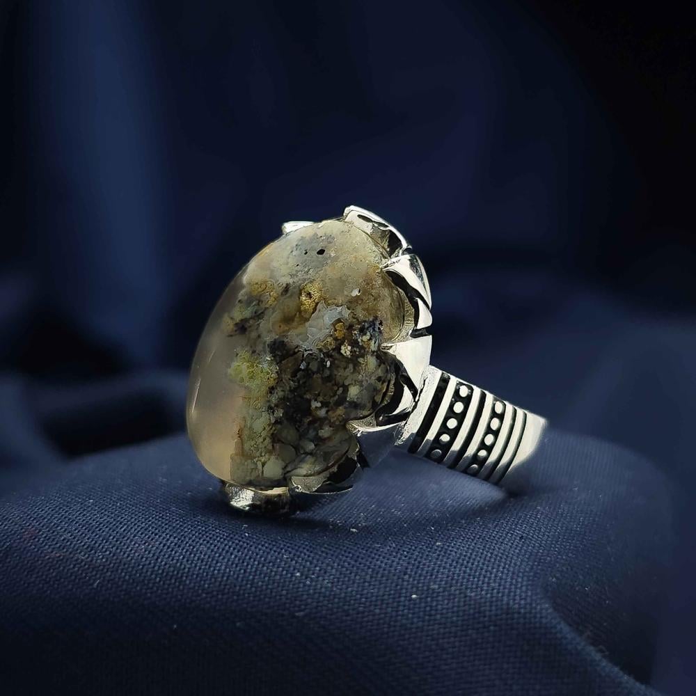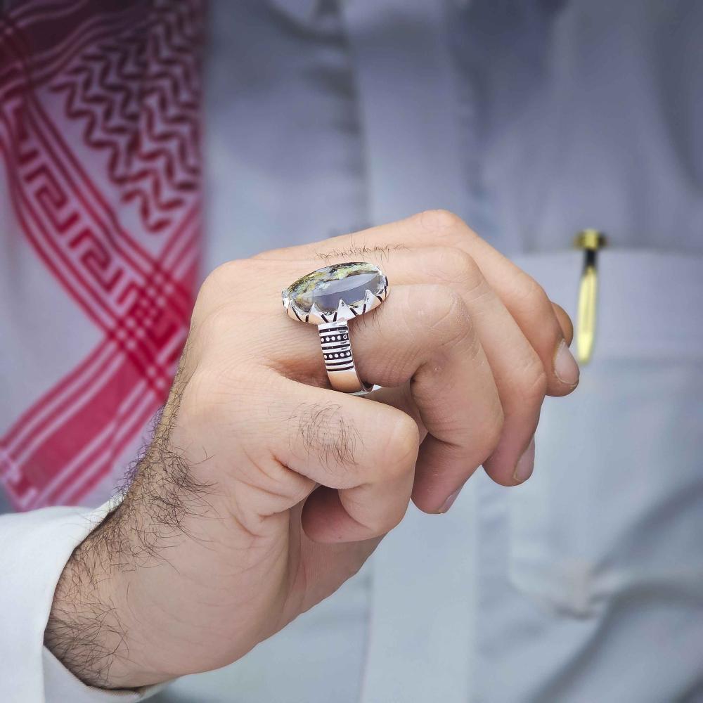 عقيق يماني طبيعي يعطي الخاتم لمسة فاخرة وأصيلة.