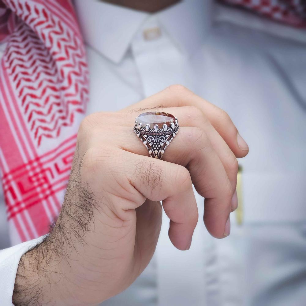 عقيق يماني طبيعي يعطي الخاتم لمسة فاخرة وأصيلة.