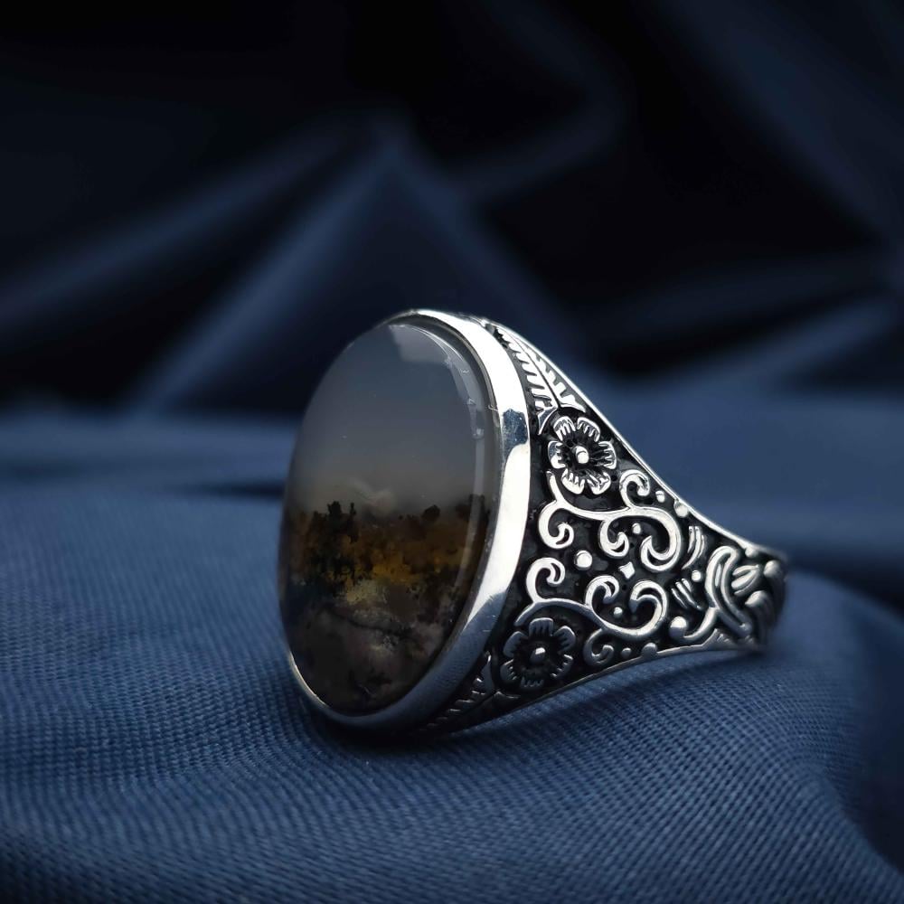 عقيق يماني طبيعي يعطي الخاتم لمسة فاخرة وأصيلة.
