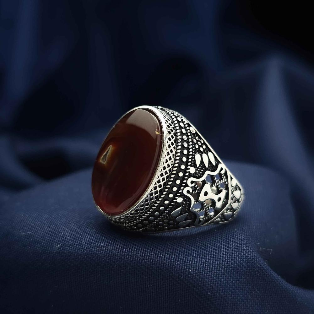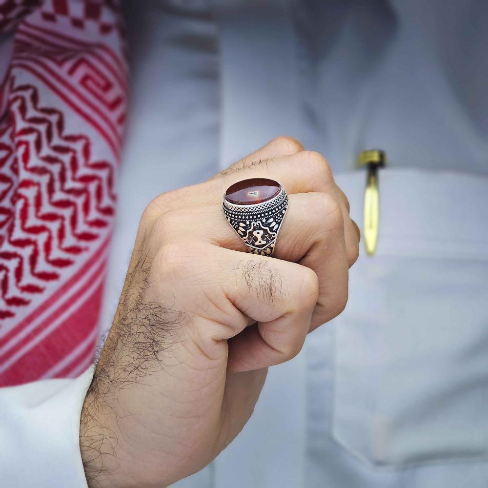 عقيق يماني طبيعي يعطي الخاتم لمسة فاخرة وأصيلة.