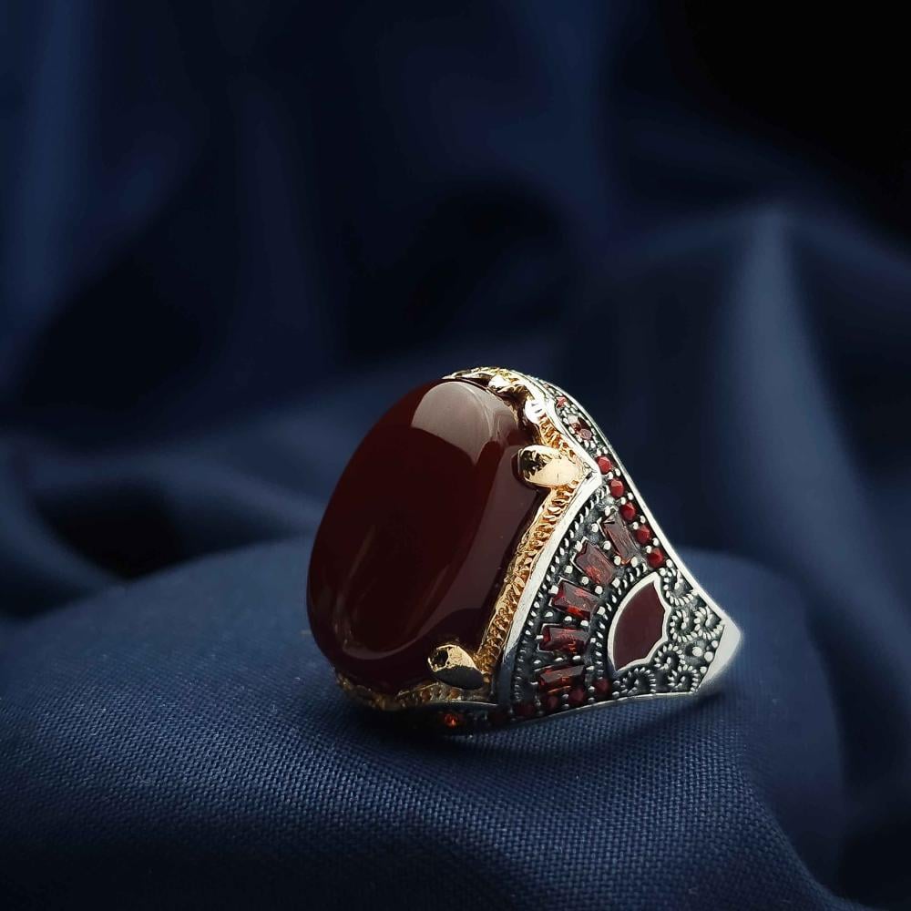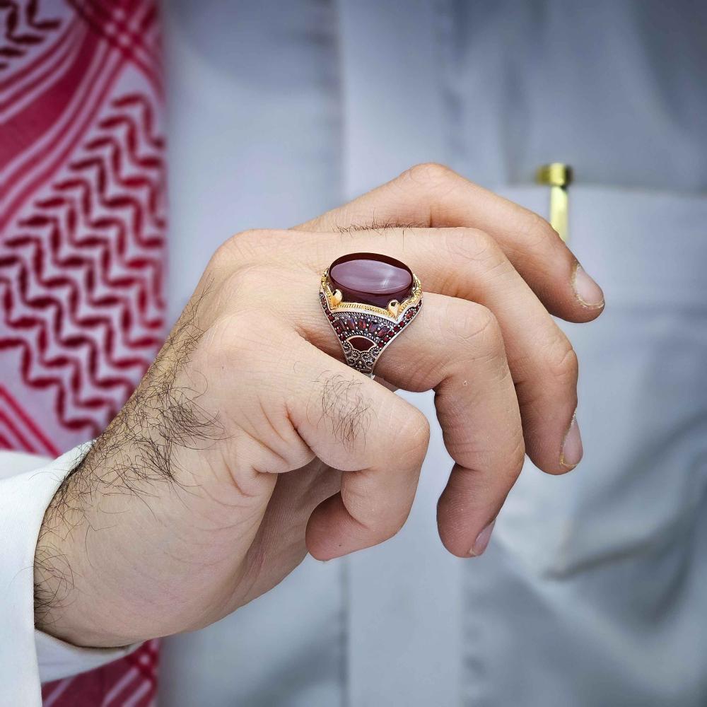 عقيق يماني طبيعي يعطي الخاتم لمسة فاخرة وأصيلة.