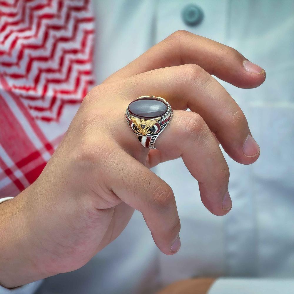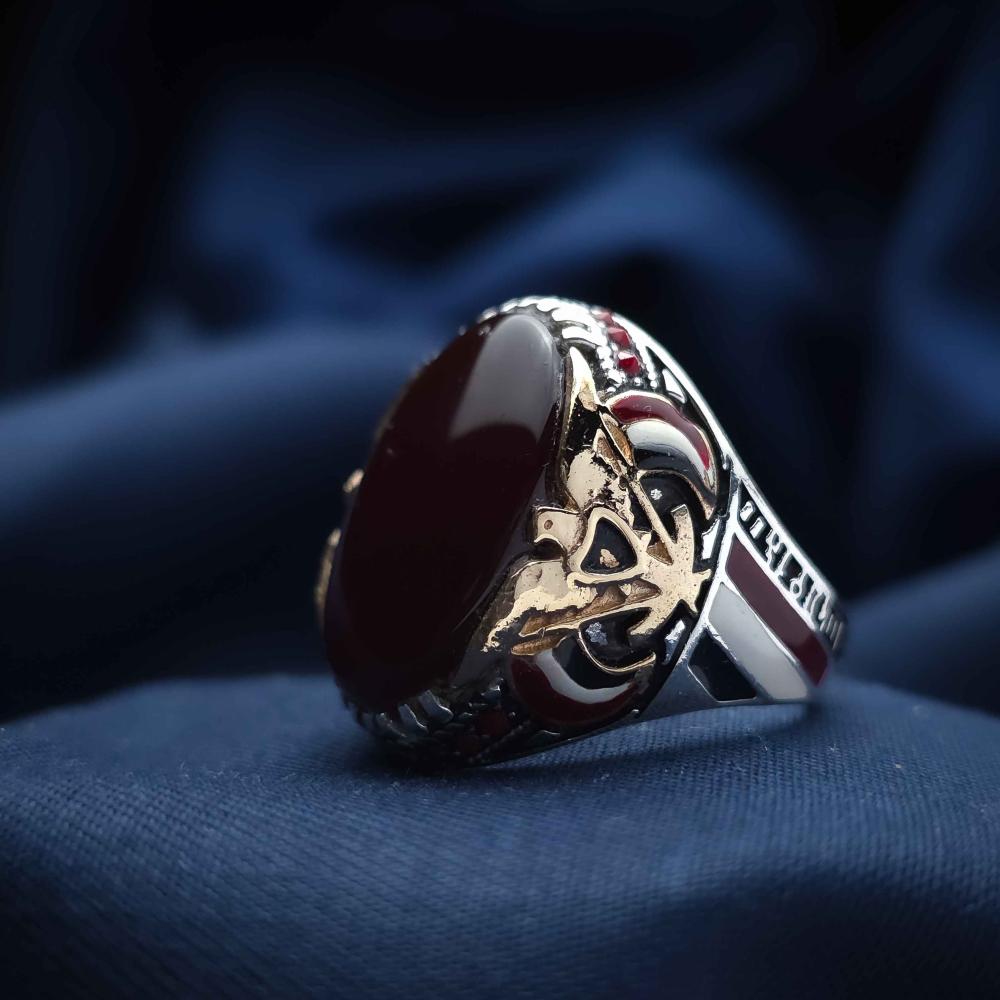عقيق يماني طبيعي يعطي الخاتم لمسة فاخرة وأصيلة.