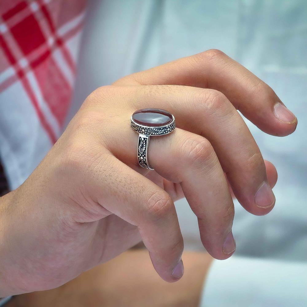 عقيق يماني طبيعي يعطي الخاتم لمسة فاخرة وأصيلة.