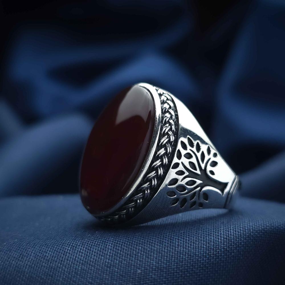 عقيق يماني طبيعي يعطي الخاتم لمسة فاخرة وأصيلة.