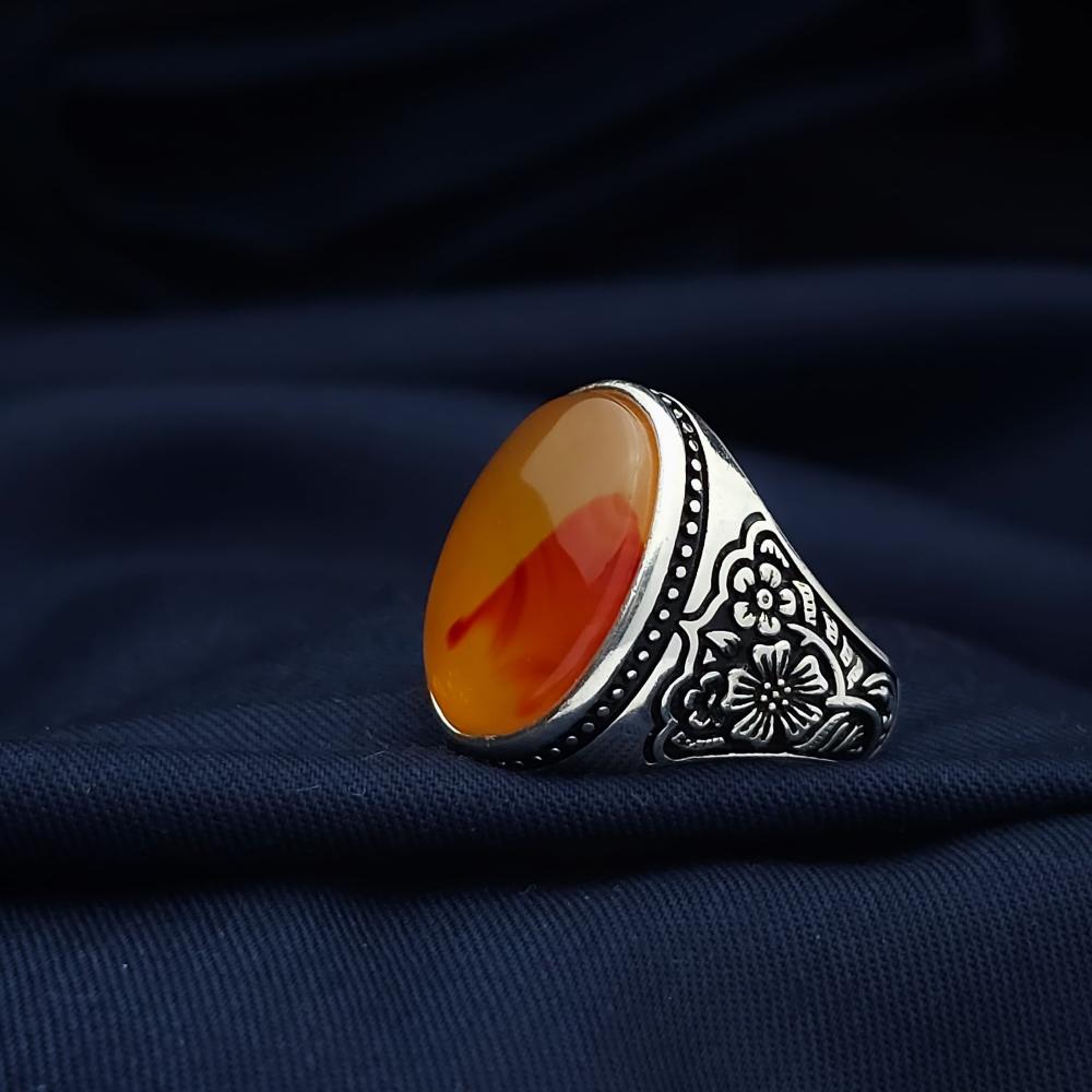 عقيق يماني طبيعي يعطي الخاتم لمسة فاخرة وأصيلة.