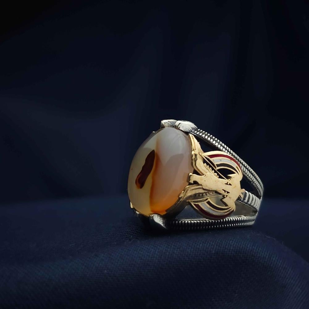عقيق يماني طبيعي يعطي الخاتم لمسة فاخرة وأصيلة.