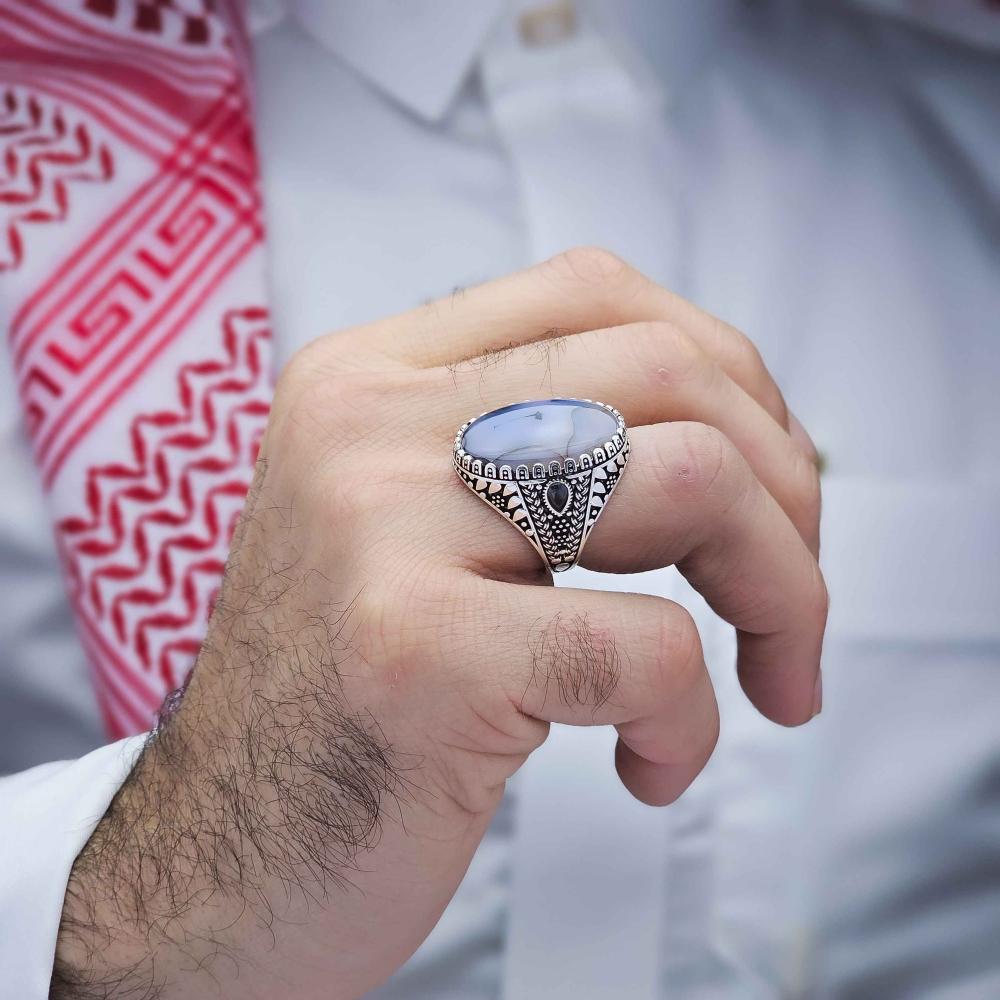 عقيق يماني طبيعي يعطي الخاتم لمسة فاخرة وأصيلة.
