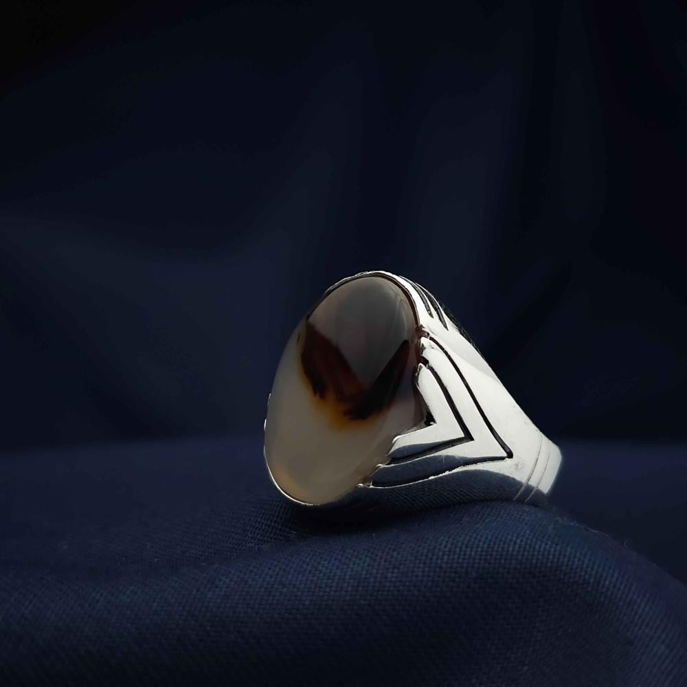 عقيق يماني طبيعي يعطي الخاتم لمسة فاخرة وأصيلة.
