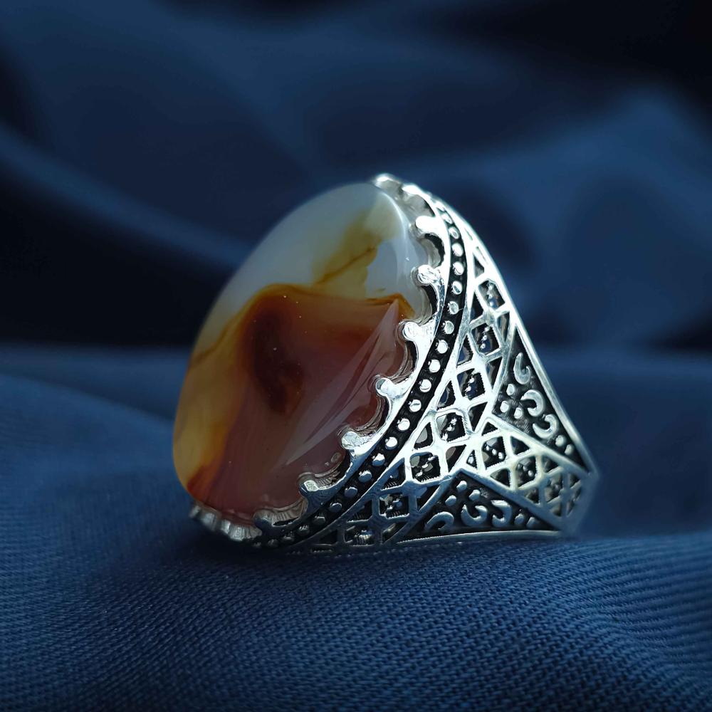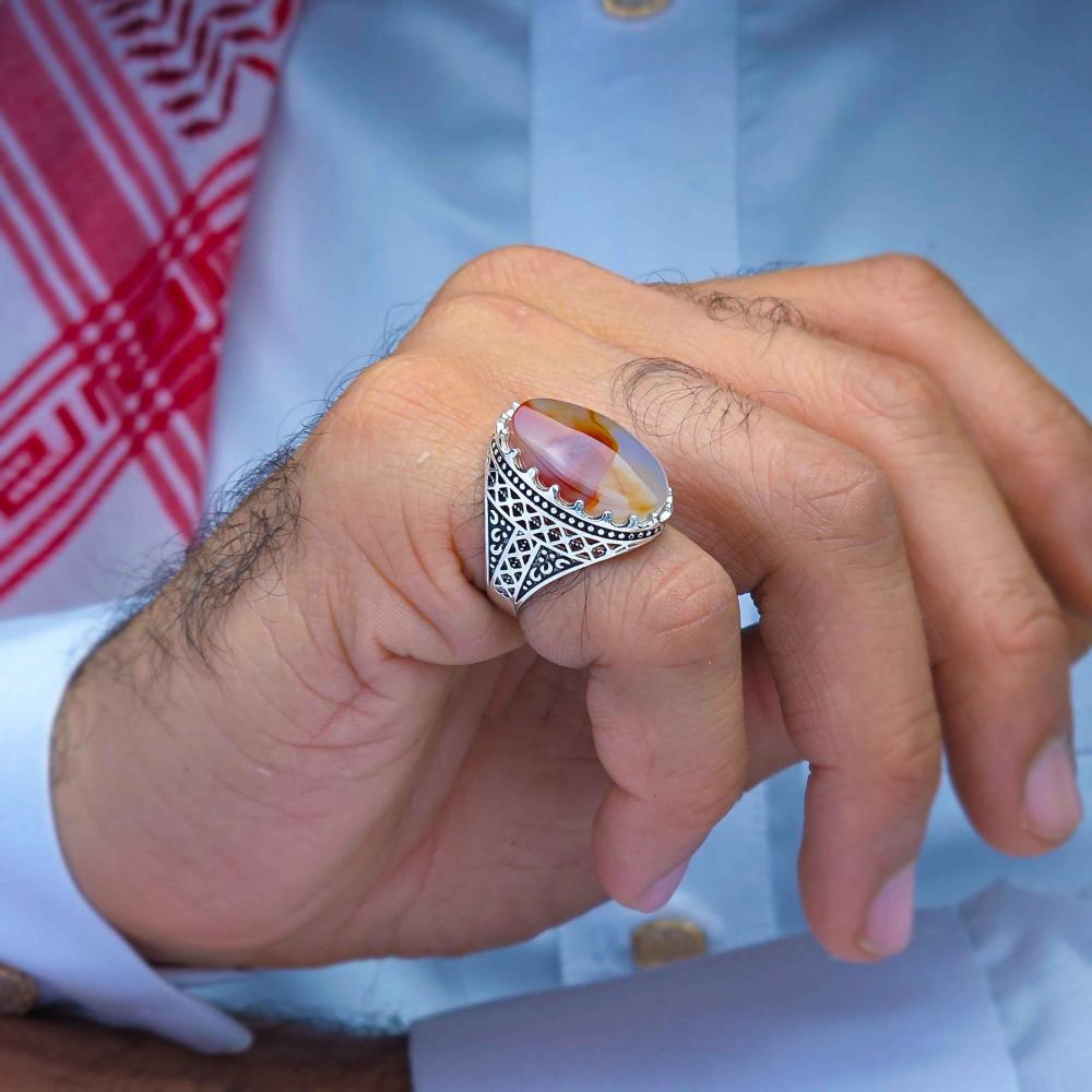 عقيق يماني طبيعي يعطي الخاتم لمسة فاخرة وأصيلة.