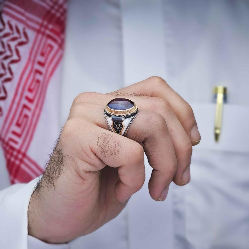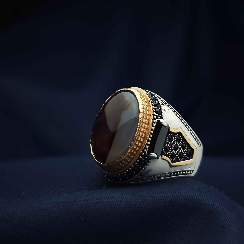 عقيق يماني طبيعي يعطي الخاتم لمسة فاخرة وأصيلة.