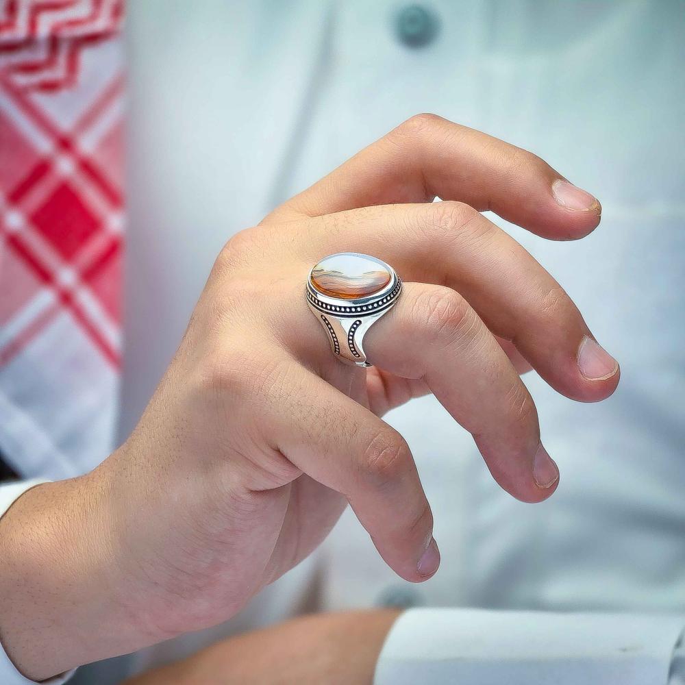 عقيق يماني طبيعي يعطي الخاتم لمسة فاخرة وأصيلة.