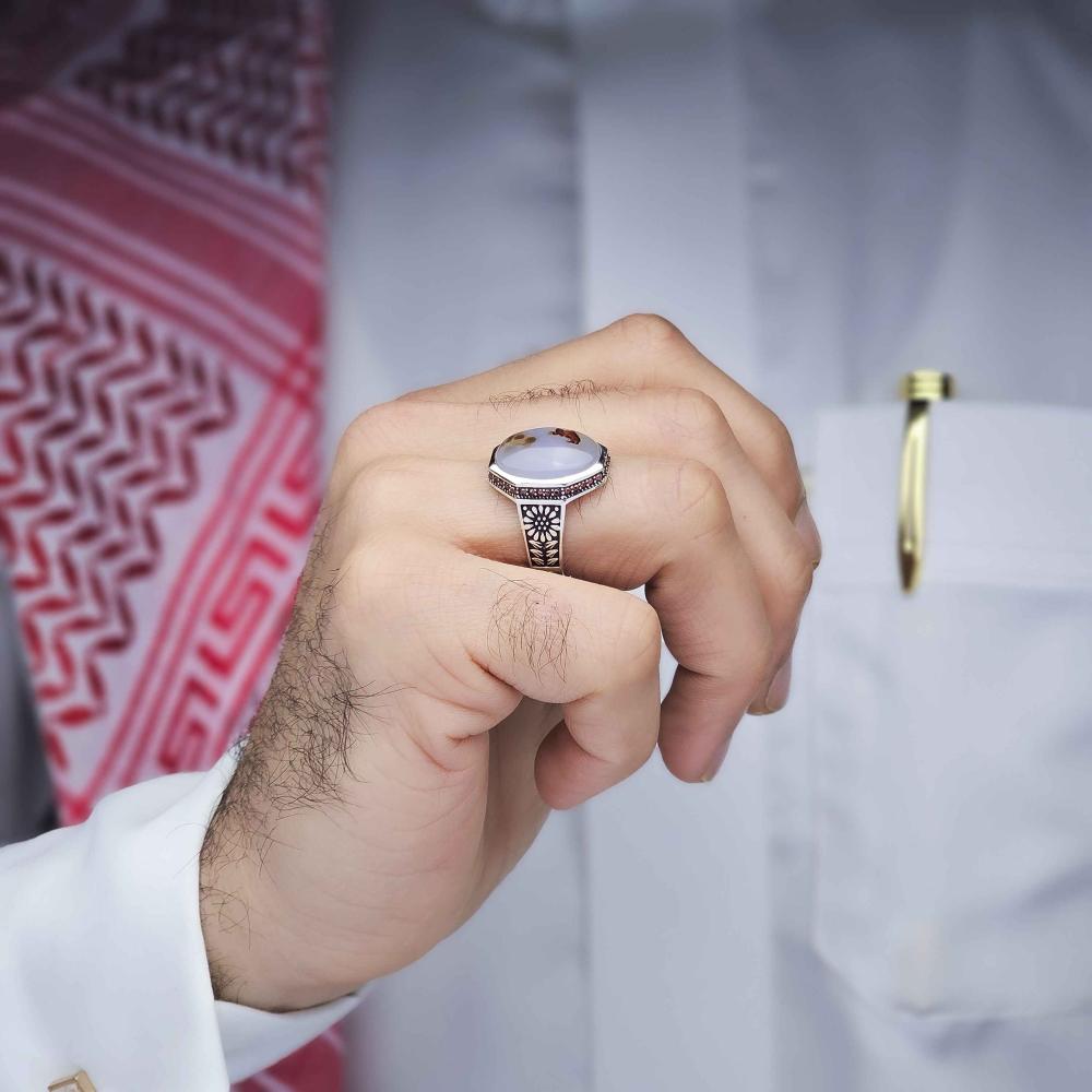 عقيق يماني طبيعي يعطي الخاتم لمسة فاخرة وأصيلة.