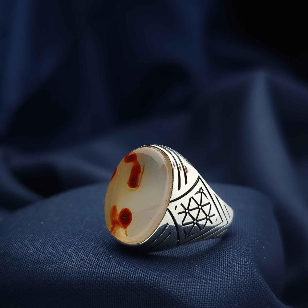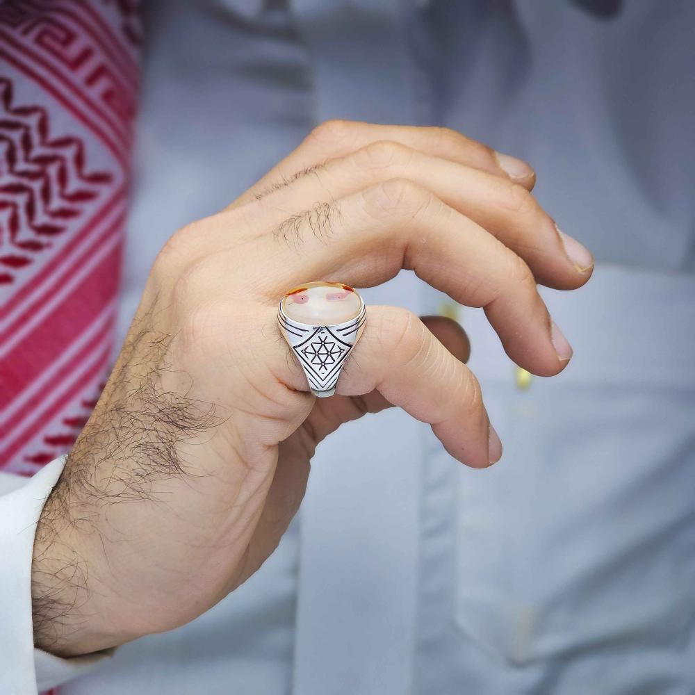 عقيق يماني طبيعي يعطي الخاتم لمسة فاخرة وأصيلة.