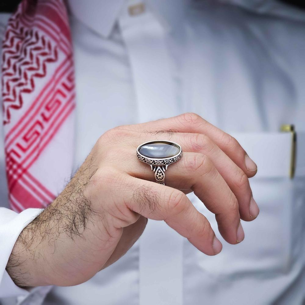 عقيق يماني طبيعي يعطي الخاتم لمسة فاخرة وأصيلة.