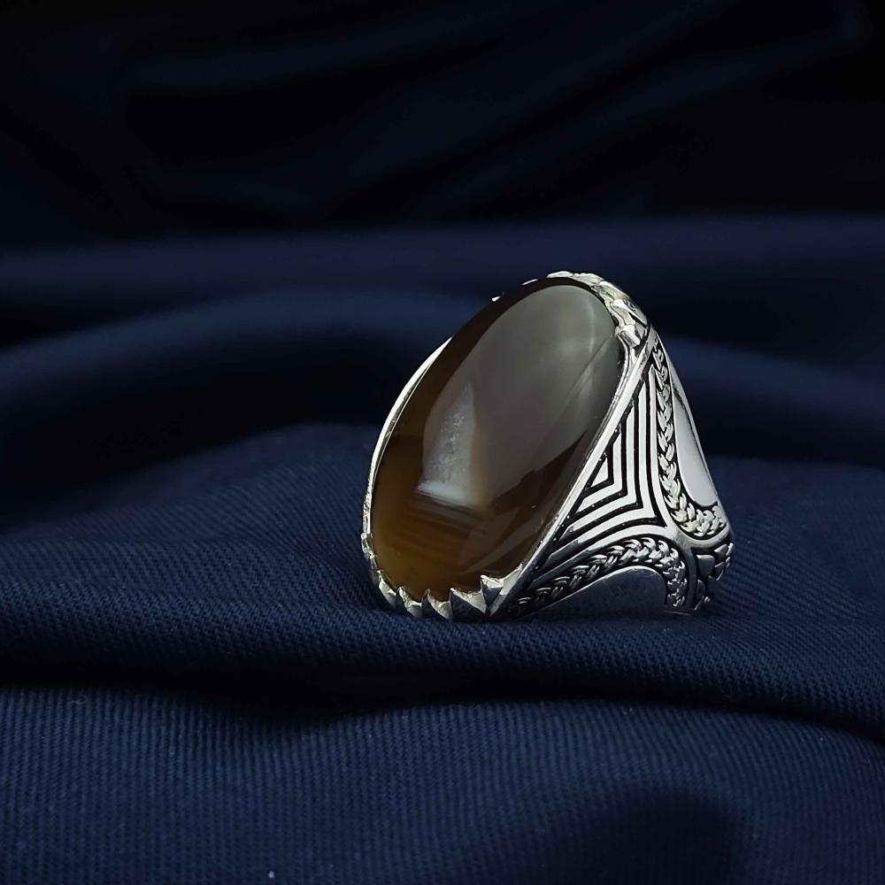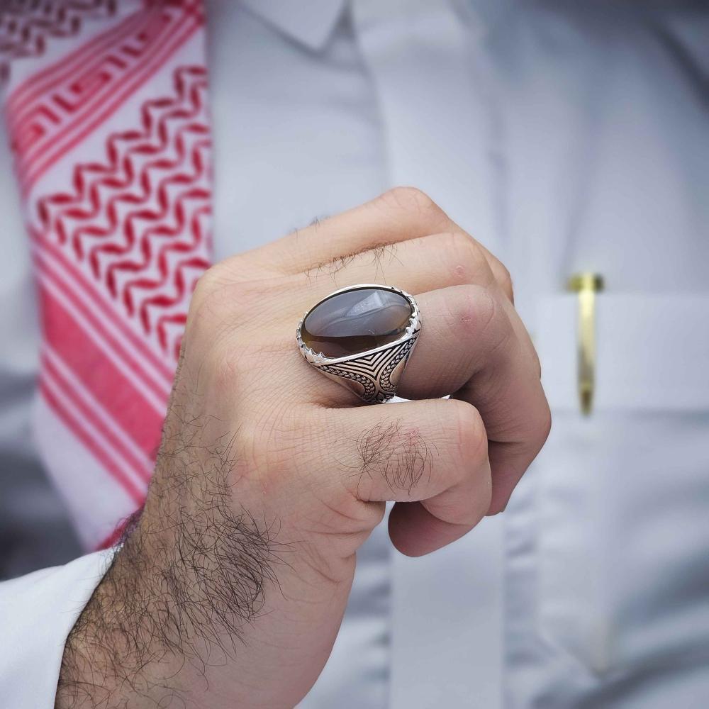 عقيق يماني طبيعي يعطي الخاتم لمسة فاخرة وأصيلة.