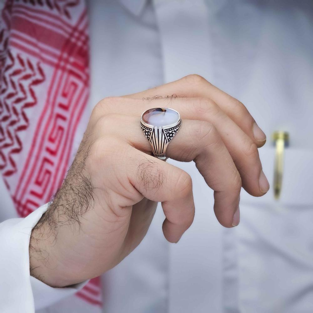 عقيق يماني طبيعي يعطي الخاتم لمسة فاخرة وأصيلة.