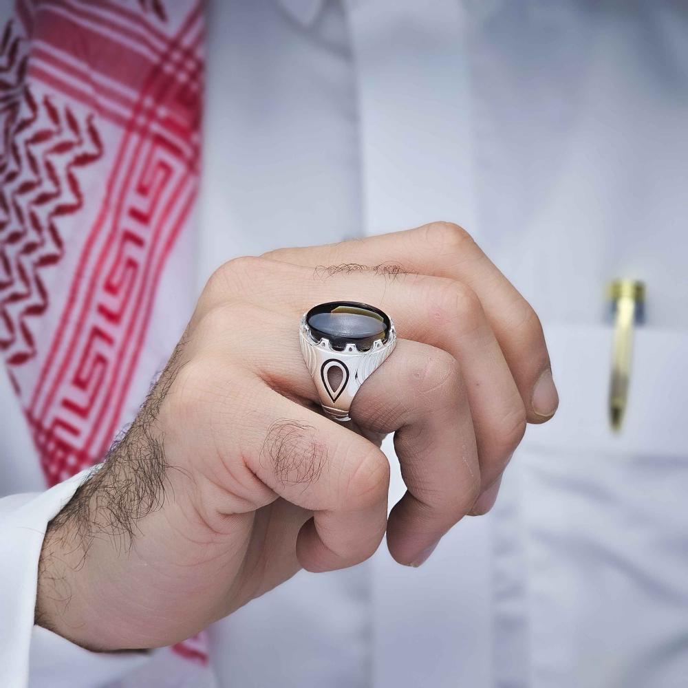 عقيق يماني طبيعي يعطي الخاتم لمسة فاخرة وأصيلة.