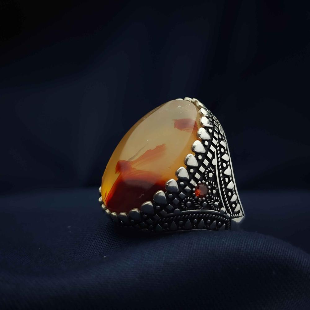 خاتم ملكي مرصع عقيق يماني مصور مزهر