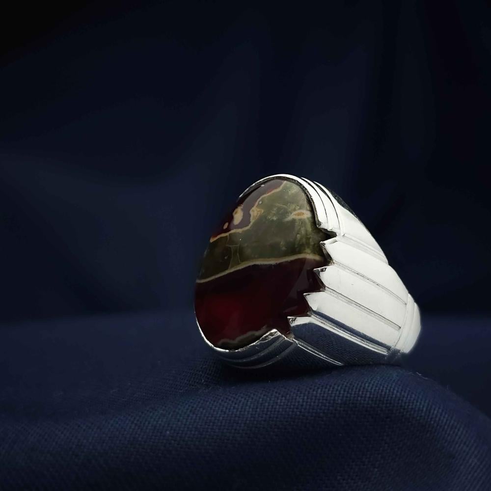 عقيق يماني طبيعي يعطي الخاتم لمسة فاخرة وأصيلة.