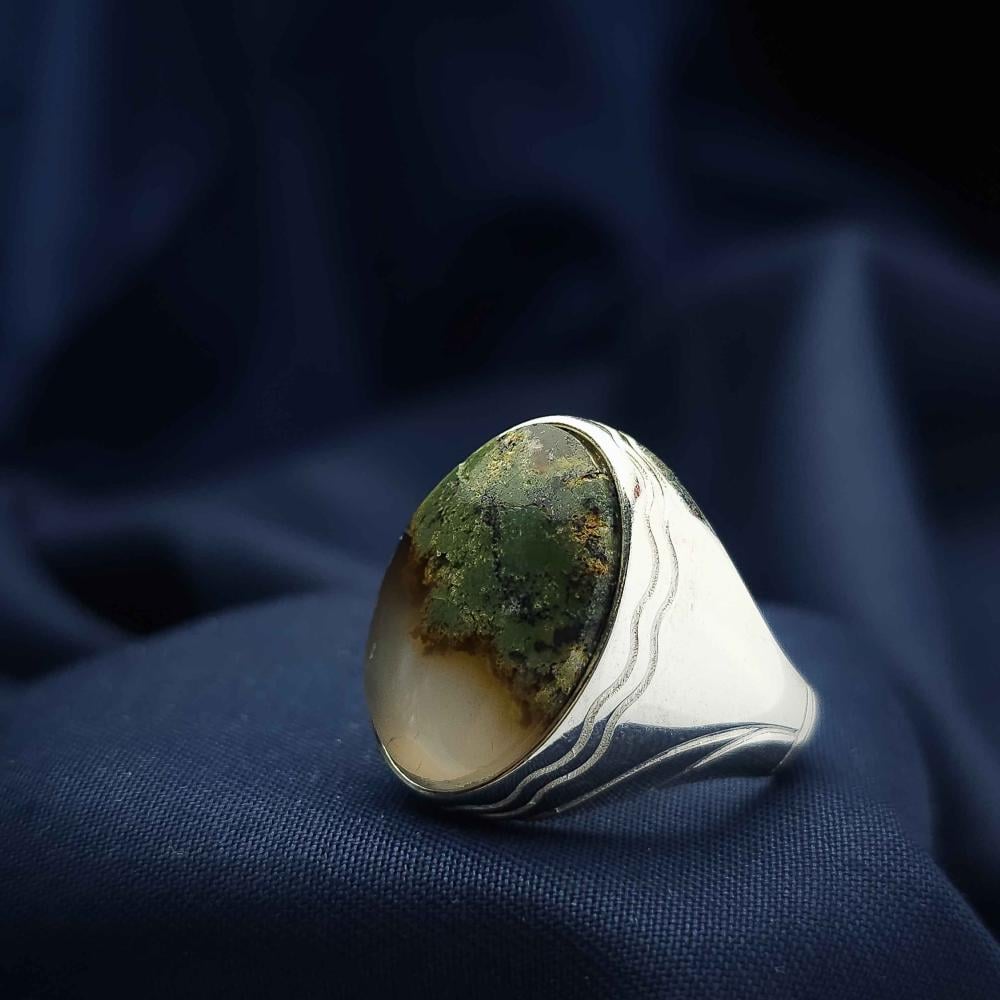 عقيق يماني طبيعي يعطي الخاتم لمسة فاخرة وأصيلة.