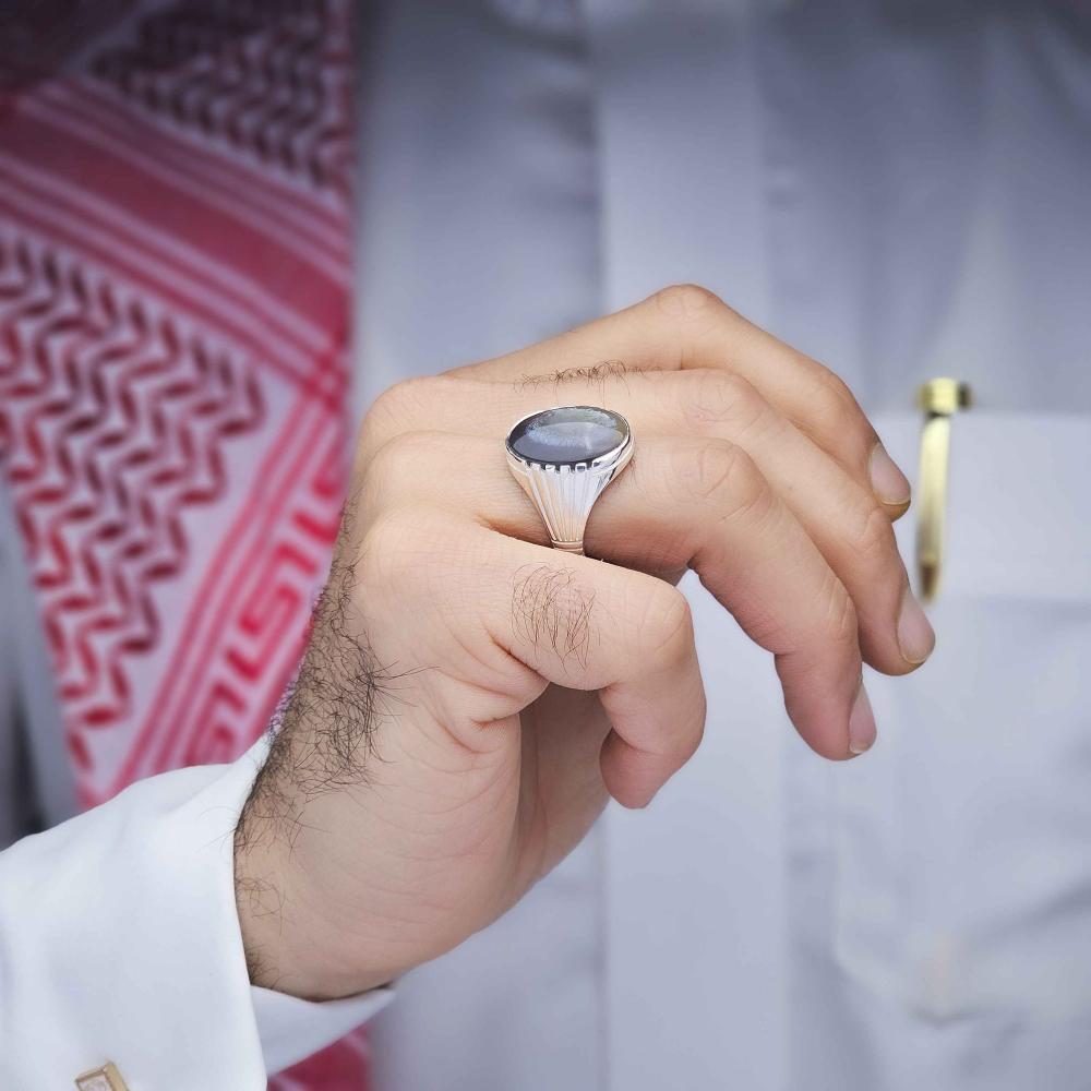 عقيق يماني طبيعي يعطي الخاتم لمسة فاخرة وأصيلة.
