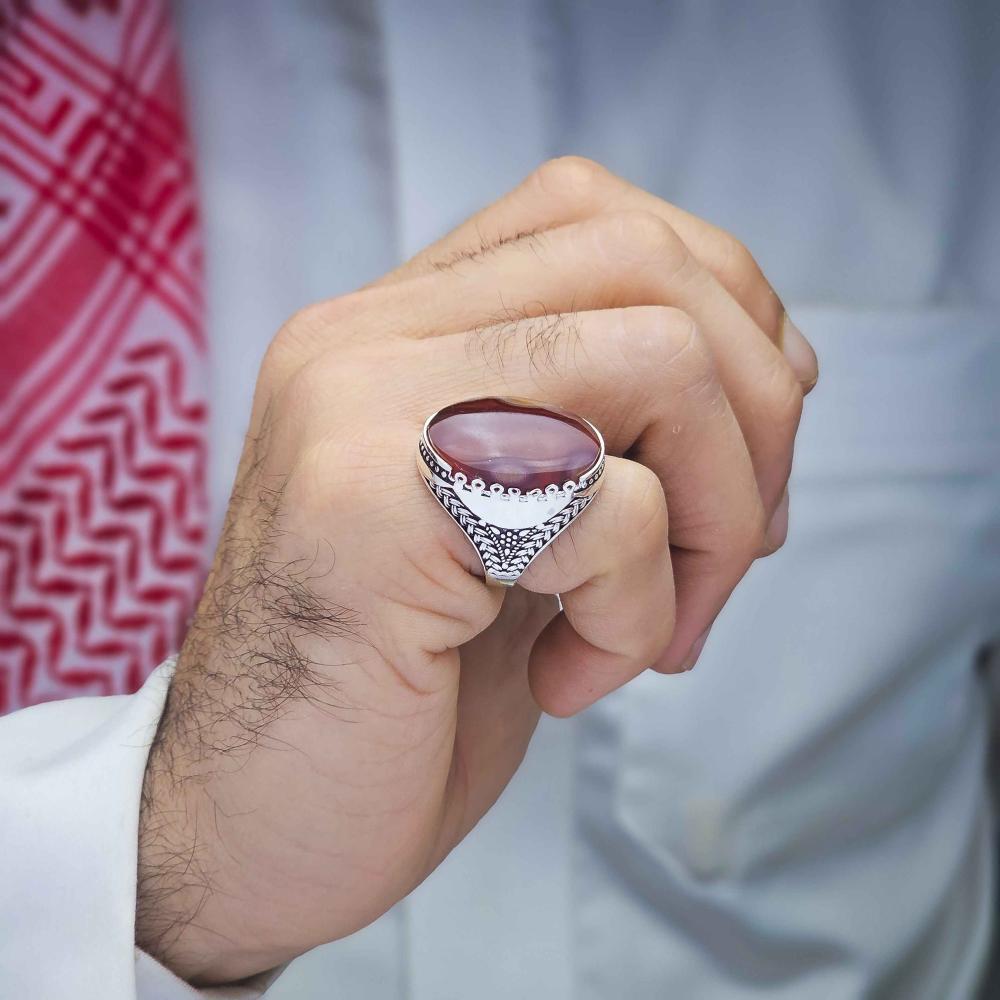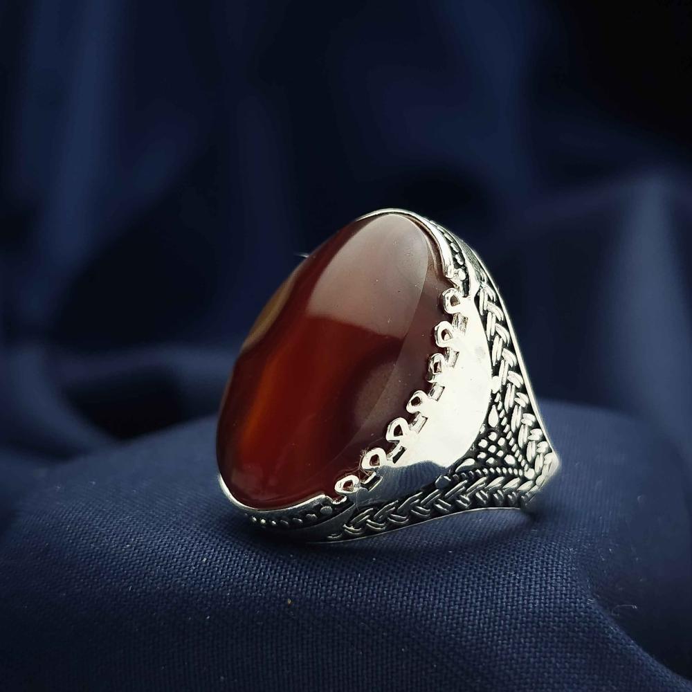 عقيق يماني طبيعي يعطي الخاتم لمسة فاخرة وأصيلة.