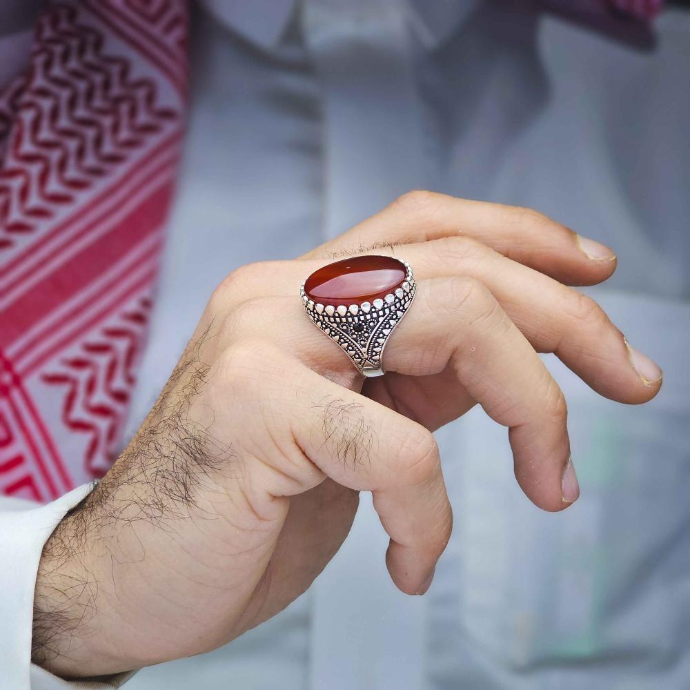 عقيق يماني طبيعي يعطي الخاتم لمسة فاخرة وأصيلة.