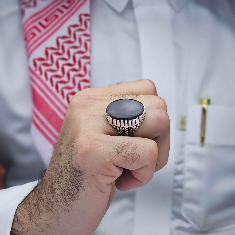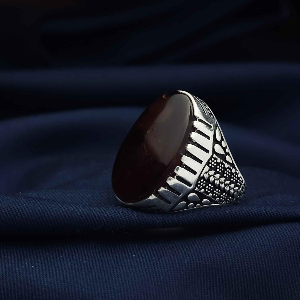 عقيق يماني طبيعي يعطي الخاتم لمسة فاخرة وأصيلة.