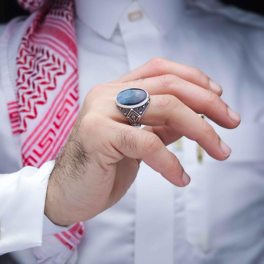 عقيق يماني طبيعي يعطي الخاتم لمسة فاخرة وأصيلة.