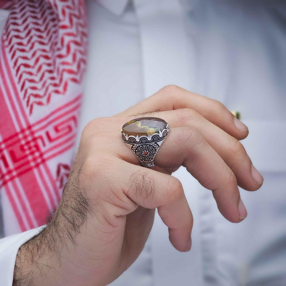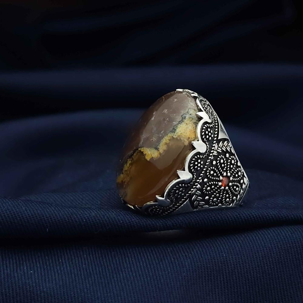 عقيق يماني طبيعي يعطي الخاتم لمسة فاخرة وأصيلة.