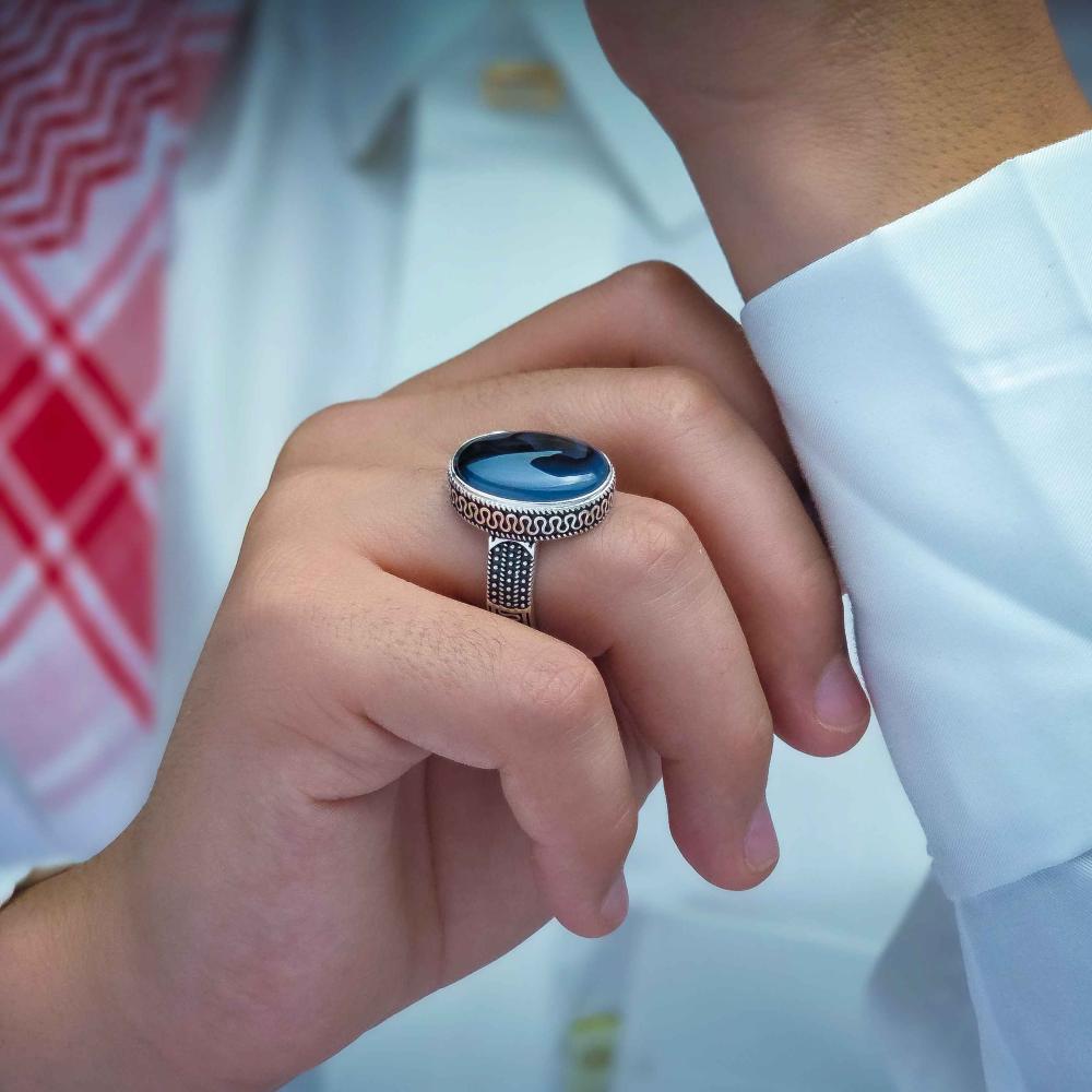 عقيق يماني طبيعي يعطي الخاتم لمسة فاخرة وأصيلة.