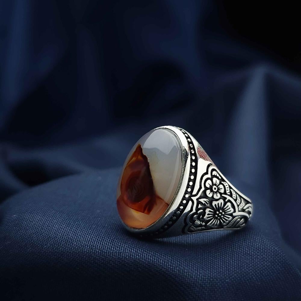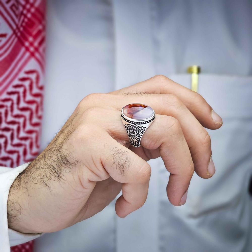 عقيق يماني طبيعي يعطي الخاتم لمسة فاخرة وأصيلة.