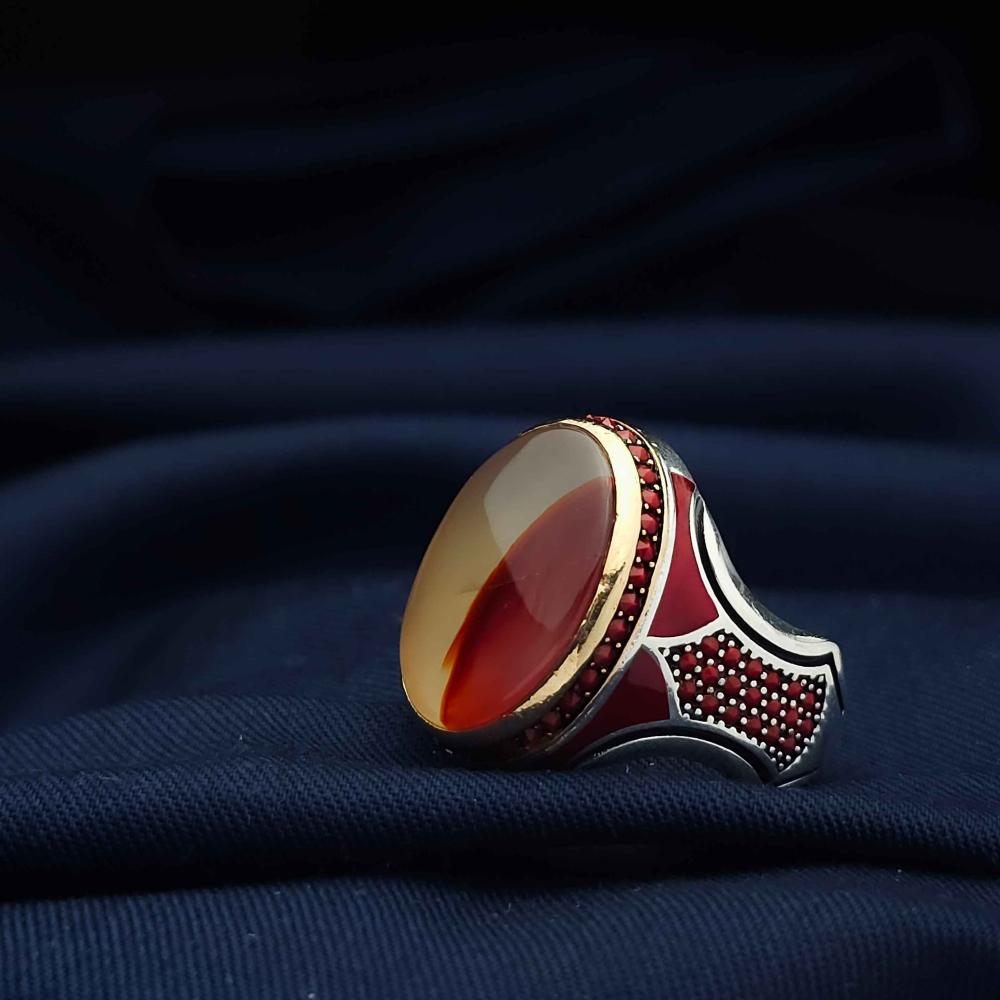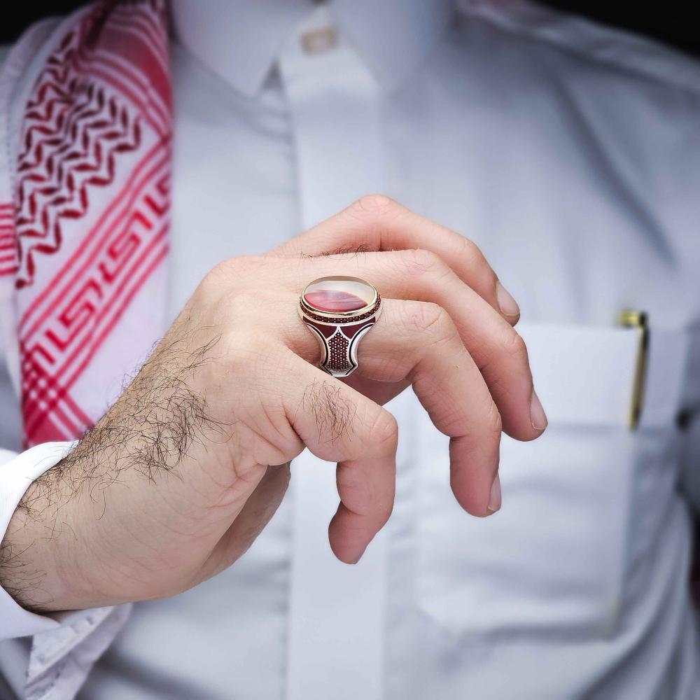 عقيق يماني طبيعي يعطي الخاتم لمسة فاخرة وأصيلة.