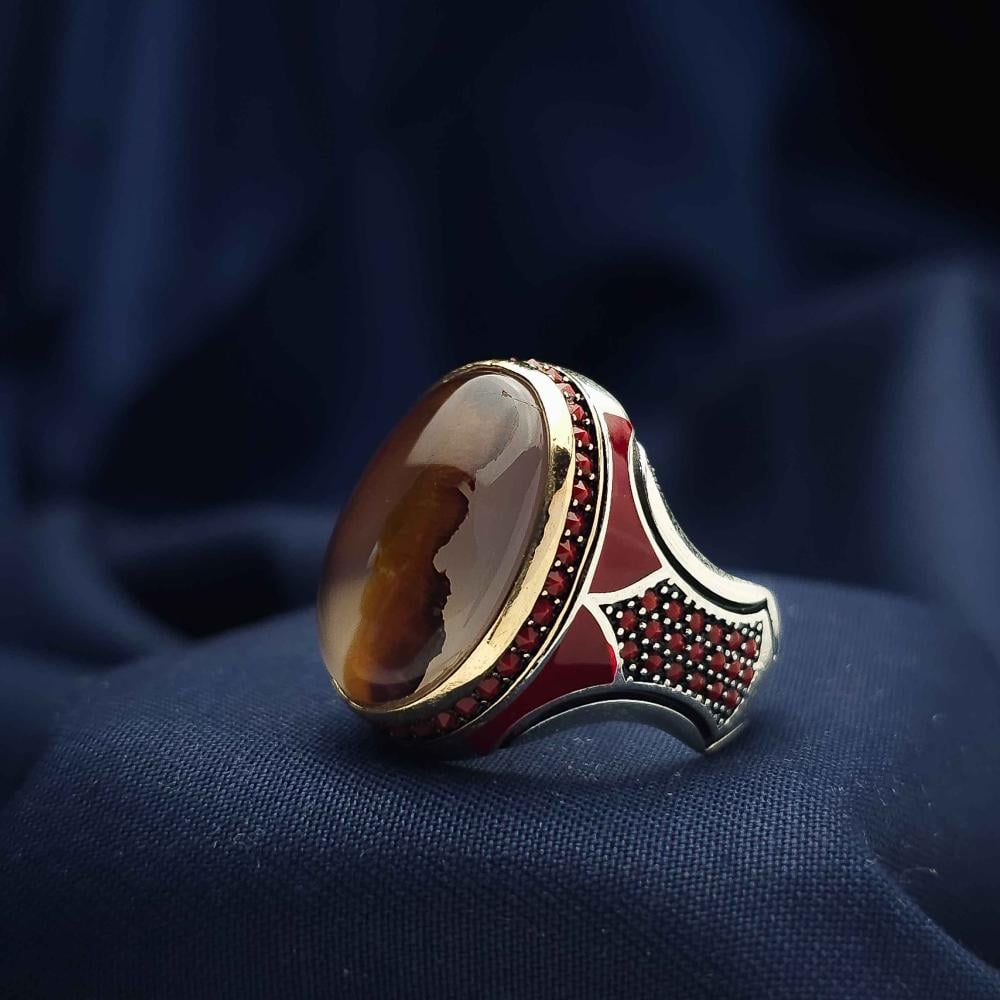 عقيق يماني طبيعي يعطي الخاتم لمسة فاخرة وأصيلة.