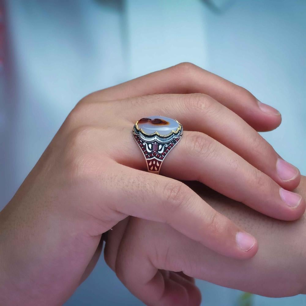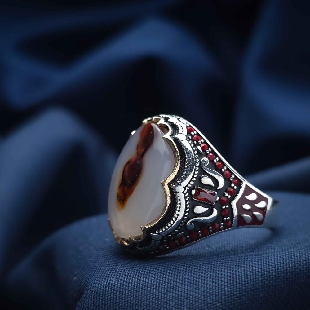 عقيق يماني طبيعي يعطي الخاتم لمسة فاخرة وأصيلة.